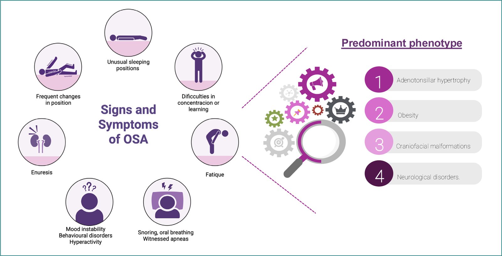 OSA is a type of sleep-disordered breathing (SDB) that is marked by frequent arousals, apneas, and hypopneas1. It can lead to reduced blood oxygen saturation and hypoventilation during sleep in children. The causes, clinical presentation, and potential consequences of OSA in children differ significantly from those in adults. Therefore, it is essential to have a specific approach tailored for this population. As well, although OSA is a common condition in children, with a prevalence ranging from 1% to 4%, it is underdiagnosed2.